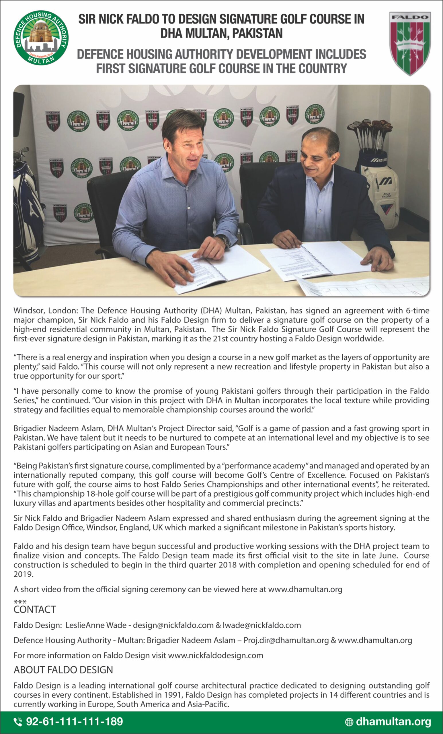 • Splendidly designed by the golf maestro, Sir Nick Faldo, Rumanza is Pakistan’s first Championship Signature 18-holes Golf Course.
